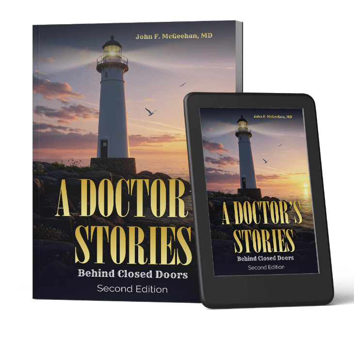 A Doctor’s Stories: Behind Closed Doors is a memoir of real encounters, not abstract medicine. Dr. McGeehan shares the lives that touched his own—a man living with gangrene who chose dignity over surgery, a wife caring for her husband through Alzheimer’s, students discovering what compassion really looks like, and even his own fight with a sudden illness that almost took his mind. These stories carry honesty, humor, and moments of quiet strength. They remind us that medicine is not only science—it is a bond between people. It is the courage to sit with pain, the grace to laugh when it feels impossible, and the humility to learn from every life.
